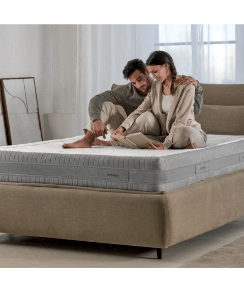 Com Twin System®, Dorelan oferece excelência no campo das tecnologias aplicadas ao descanso. Na verdade, é realmente novo o sistema de molas conquistadas caracterizadas por molas espirais duplas fabricadas com um fio de aço contínuo que, enrolando em si mesmo, cria duas espirales concêntricas: um interior para garantir o apoio delicado e outro exterior para oferecer o conforto ideal de cada parte do corpo.